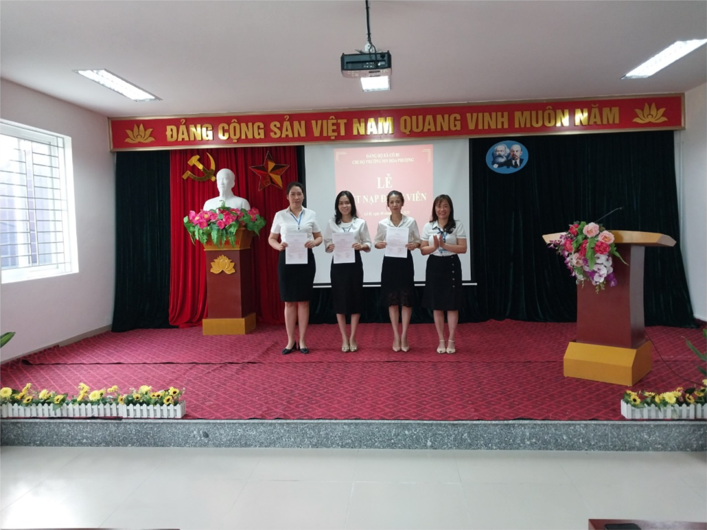 Lễ kết nạp đảng viên được diễn ra trong không khí trang nghiêm, đứng trình tự, thủ tục của Điều lệ đảng. Đồng chí Đỗ Thị Thu Thanh – Bí Thư chi bộ lên đọc Quyết định và trao quyết định kết nạp Đảng cho 03 đồng chí đồng thời quán triệt nhiệm vụ, quyền hạn của người đảng viên, nhiệm vụ của Chi bộ. Phân công đảng viên chính thức giúp đỡ 3 đồng chí trong thời gian đảng viên dự bị.